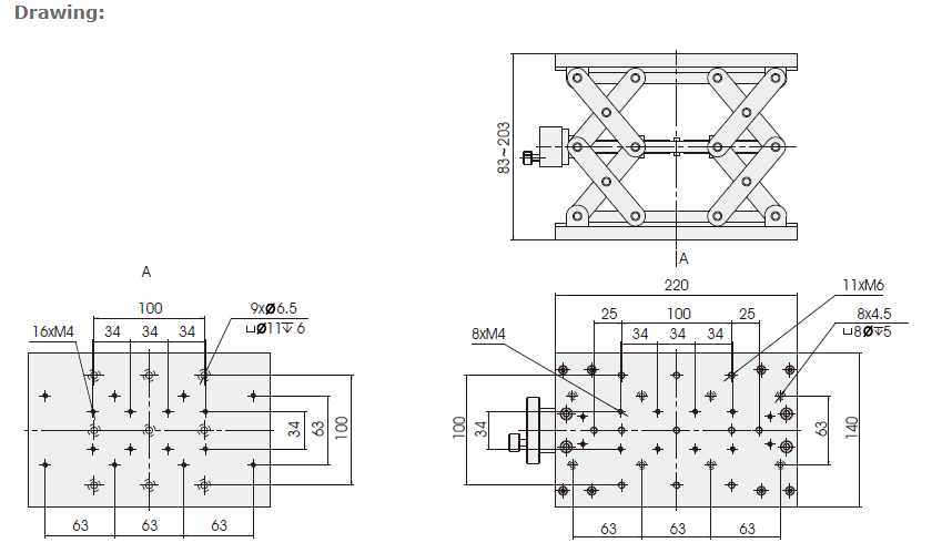 • Uses scissors structure, featured with high stability.