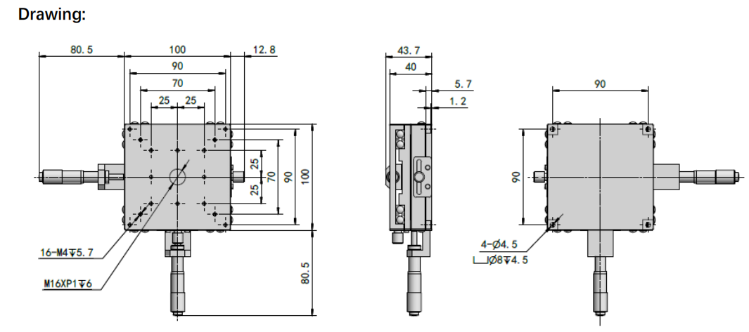 • Our xy translation stages use high quality micrometer head with 0.5mm pitch. It provides 0.01mm resolution. We have three drive positions for customer choice (left hand, right hand and center)