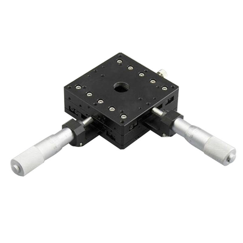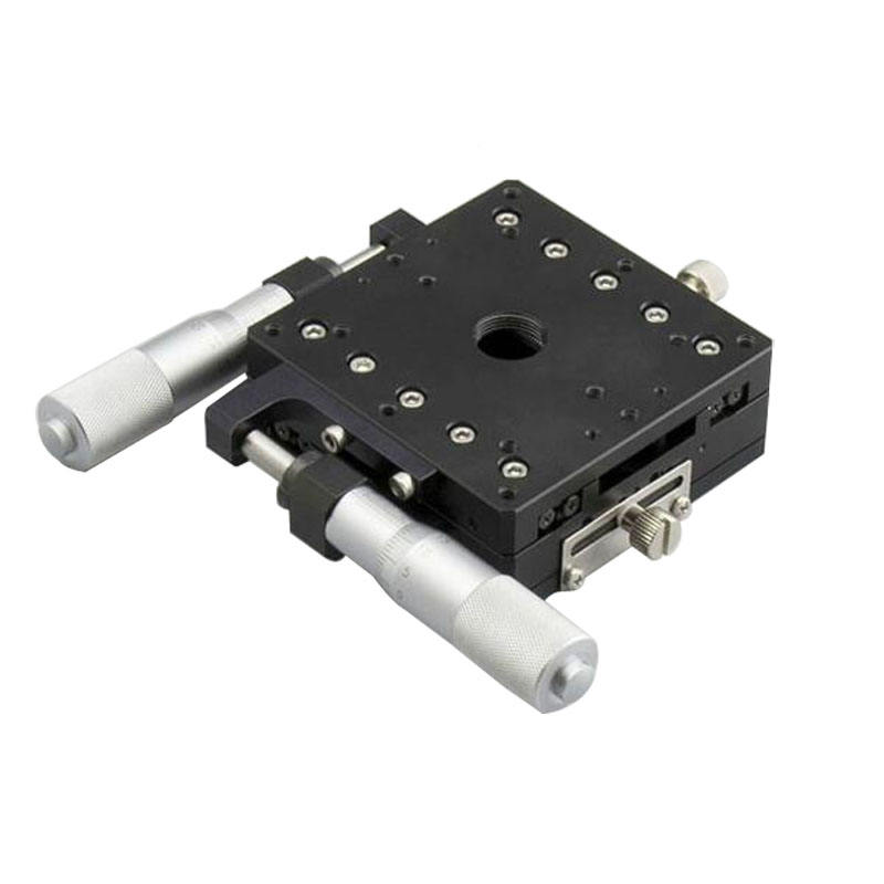 • The manual xy linear stage uses crossed roller guide which ensures the high precision and smooth of motion. The main material of the manual xy translation stage is aluminum alloy, so the weight of manual xy stage is very light and the stage can be easily built in other equipment.